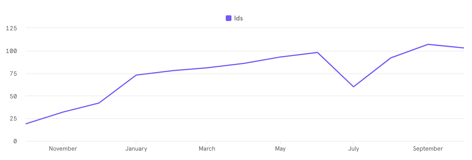 Modellen kan også håndtere forhåndsbestemte aktiviteter. Modellen utforsker en svært stor mengde kombinasjoner og restriksjoner som er umulig å håndtere manuelt, og leverer optimaliserte aktivitetsplaner for kirurger på en brøkdel av tiden. Unike brukere av denne funksjonaliteten har økt jevnlig siden Deepinsight Hero ble introdusert på LDS, se Figur 3. Vår observasjon er at introduksjonen av dette har resultert i en direkte økning i utnyttelsen av operasjonskapasiteten.